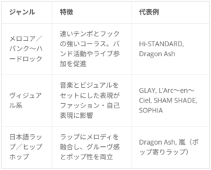 この世代は、メロコア/パンク〜ハードロック、ヴィジュアル系、メロディ入り日本語ラップ を横断的に聴いた「混淆世代」です。